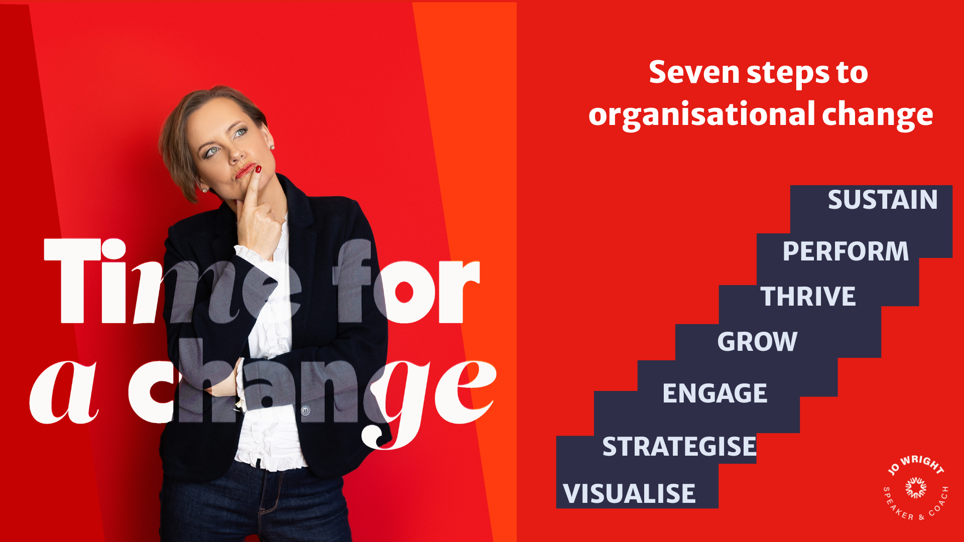 Jo lives and breathes her passion to help organisations make change stick. Through her work, she helps bring her ‘seven steps to transformational change’ to life. Whether that is through her consultancy work, speaking engagements, her Executive leadership coaching and mentoring or the sessions to build capability and confidence.